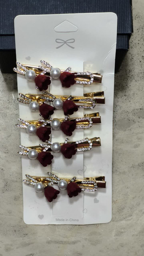 گیره مو گل و مروارید زنانه فلزی (تکی )